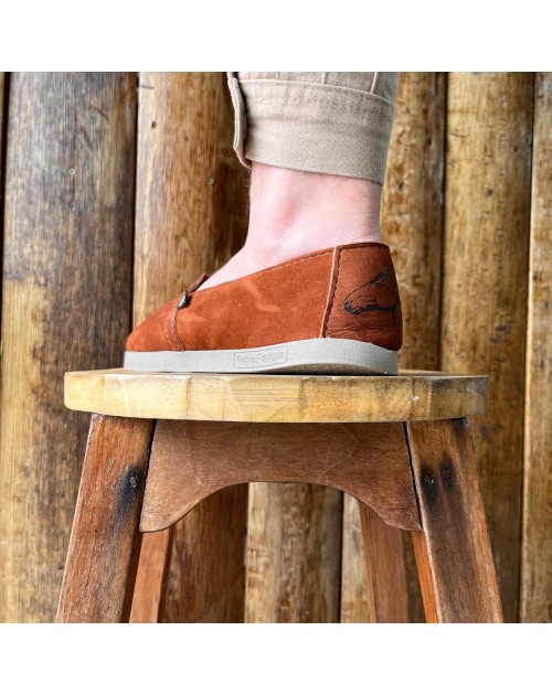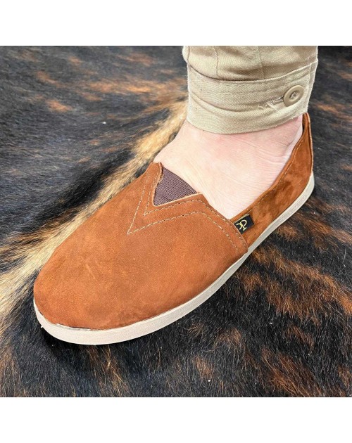 ALPARGATA PÁTRIA PAMPA, CONFECCIONADA EM COURO NOBUCK E SOLADO EMBORRACHADO, POSSUÍ ALTA RESISTÊNCIA, PROPORCIONANDO MAIOR DURABILIDADE, ELEGÂNCIA E CONFORTO.