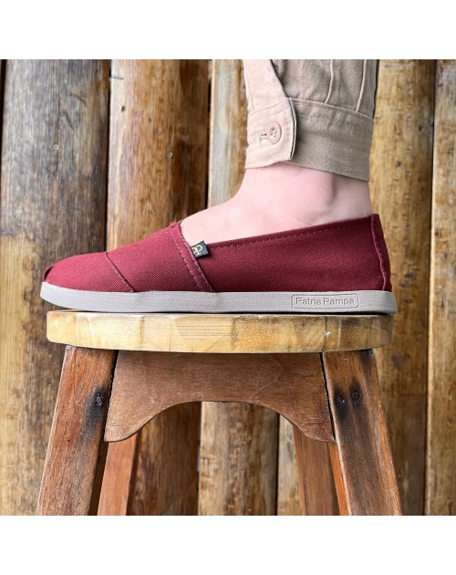 ALPARGATA PÁTRIA PAMPA, CONFECCIONADA EM LONA COM SOLADO EMBORRACHADO, POSSUÍ ALTA RESISTÊNCIA, PROPORCIONANDO MAIOR DURABILIDADE, ELEGÂNCIA E CONFORTO.
